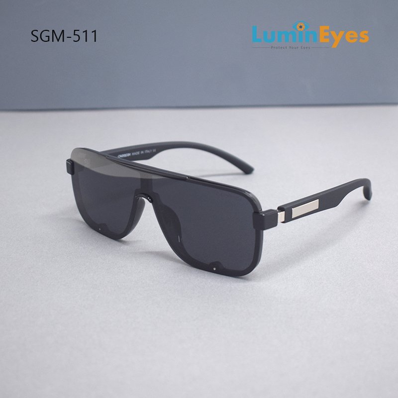 Step out in style with these sleek black oversized shield sunglasses (SGM-511). Designed for both men and women, they offer full UV protection while making a bold fashion statement. Lightweight and comfortable, these sunglasses are perfect for everyday wear, beach outings, or driving. Elevate your look with a modern, edgy design that complements any outfit.
