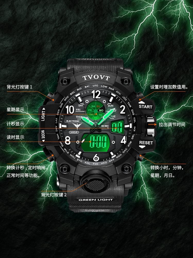 TVOVT 8803 Waterproof Duel Analog & Digital Display Sports Watch With Led Light
