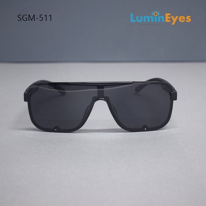 Step out in style with these sleek black oversized shield sunglasses (SGM-511). Designed for both men and women, they offer full UV protection while making a bold fashion statement. Lightweight and comfortable, these sunglasses are perfect for everyday wear, beach outings, or driving. Elevate your look with a modern, edgy design that complements any outfit.