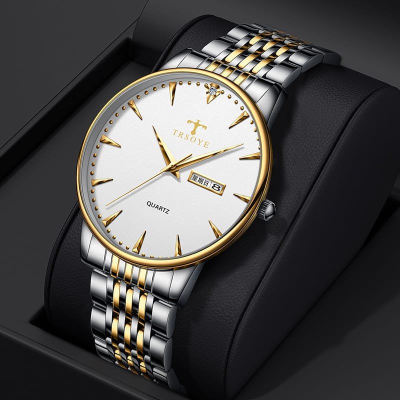 TRSOYE 881 Elite Black Silver Gold Stainless Steel Men’s Watch – Date Display Edition