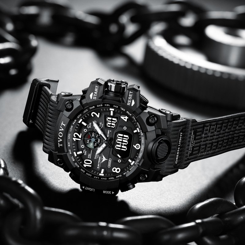 TVOVT 8803 Waterproof Duel Analog & Digital Display Sports Watch With Led Light